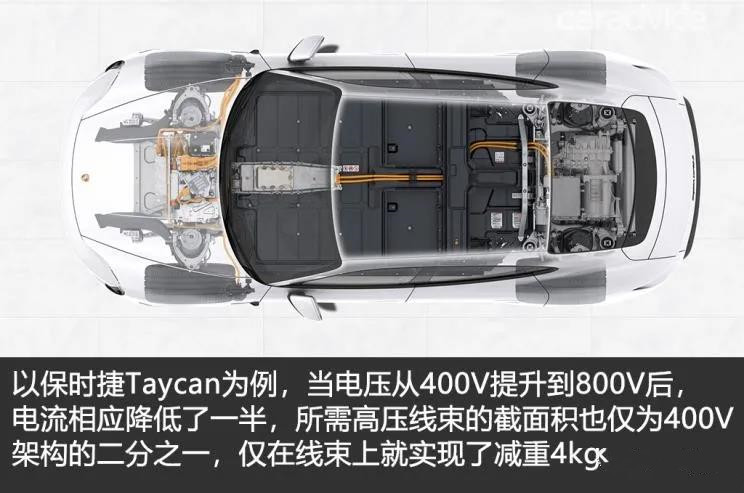 与此同时,在用电功率相同的前提下,电压等级的提高还将减小高压线束上传输的电流,这将缩减高压线束的截面积,达到降低线束重量、节省安装空间的效果。