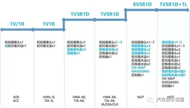 自动行车,目前发展到点对点自动导航驾驶阶段。主流传感器方案为:激光雷达x1~3+毫米波雷达x5~8+ADS摄像头x7~10。